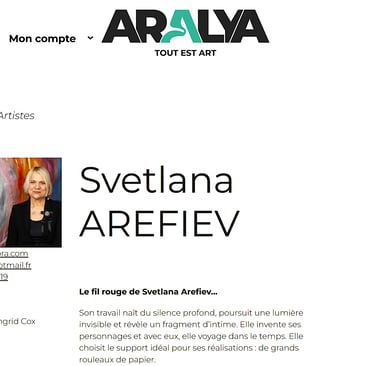 Svetlana Arefiev est présentée dans Aralya , magazine d’art contemporain parmi une sélection d’artistes contemporains reconnus.