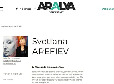 Discover Aralya, a contemporary art magazine. Svetlana Arefiev is featured among a curated selection of established contemporary artists.