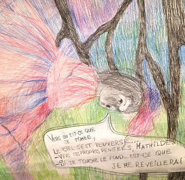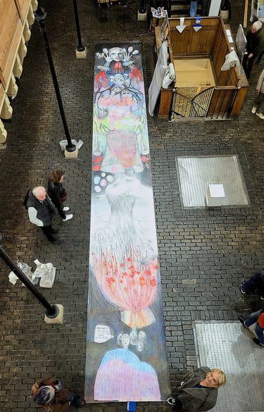 This year, at the Biennale 109 in Paris, Svetlana Arefiev presented the scroll “Mathilde in Wonderland”, featuring a full 10 meters of colored pencil drawings!