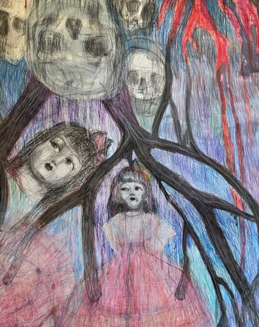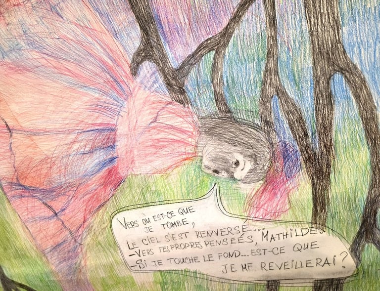 Mathilde in Wonderland. Colored pencils on paper, 1.5 m x 10 m