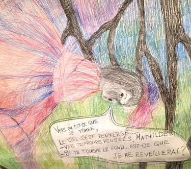 Mathilde est un personnage réel : une poupée ancienne, aux bras perdus, qui a trouvé refuge dans l’atelier de l’artiste. Son voyage au pays des merveilles est une nouvelle histoire sans fin.