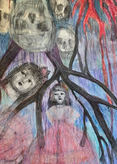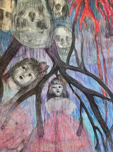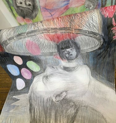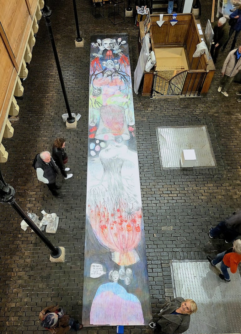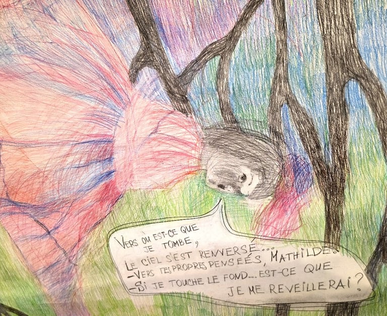 Mathilde au pays des merveilles. Crayons de couleur sur papier, 1,5 m x 10 m